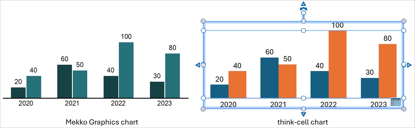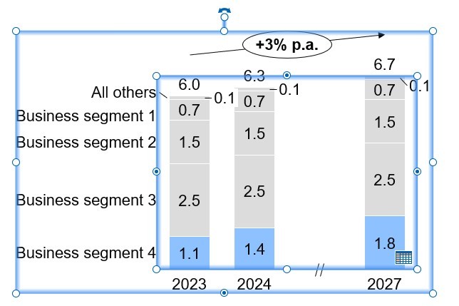 - Automated chart updates with think-cell's programming functions become even more automatic: The chart width remains fixed when the number of chart categories changes, minimizing necessary manual changes to the slide layout.