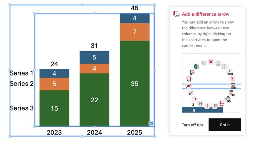 We’ve added in-product tips to help you use think-cell features you might not have seen before. These will appear based on what you’re currently doing, giving you a smoother experience as you get to know think-cell.