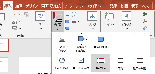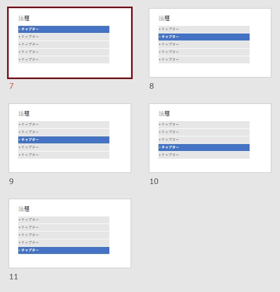 今回の資料は5つのセクションで構成しているので、チャプターにオンマウスしてCtrl+Alt+↓ を押し、5つのチャプターを作ります。