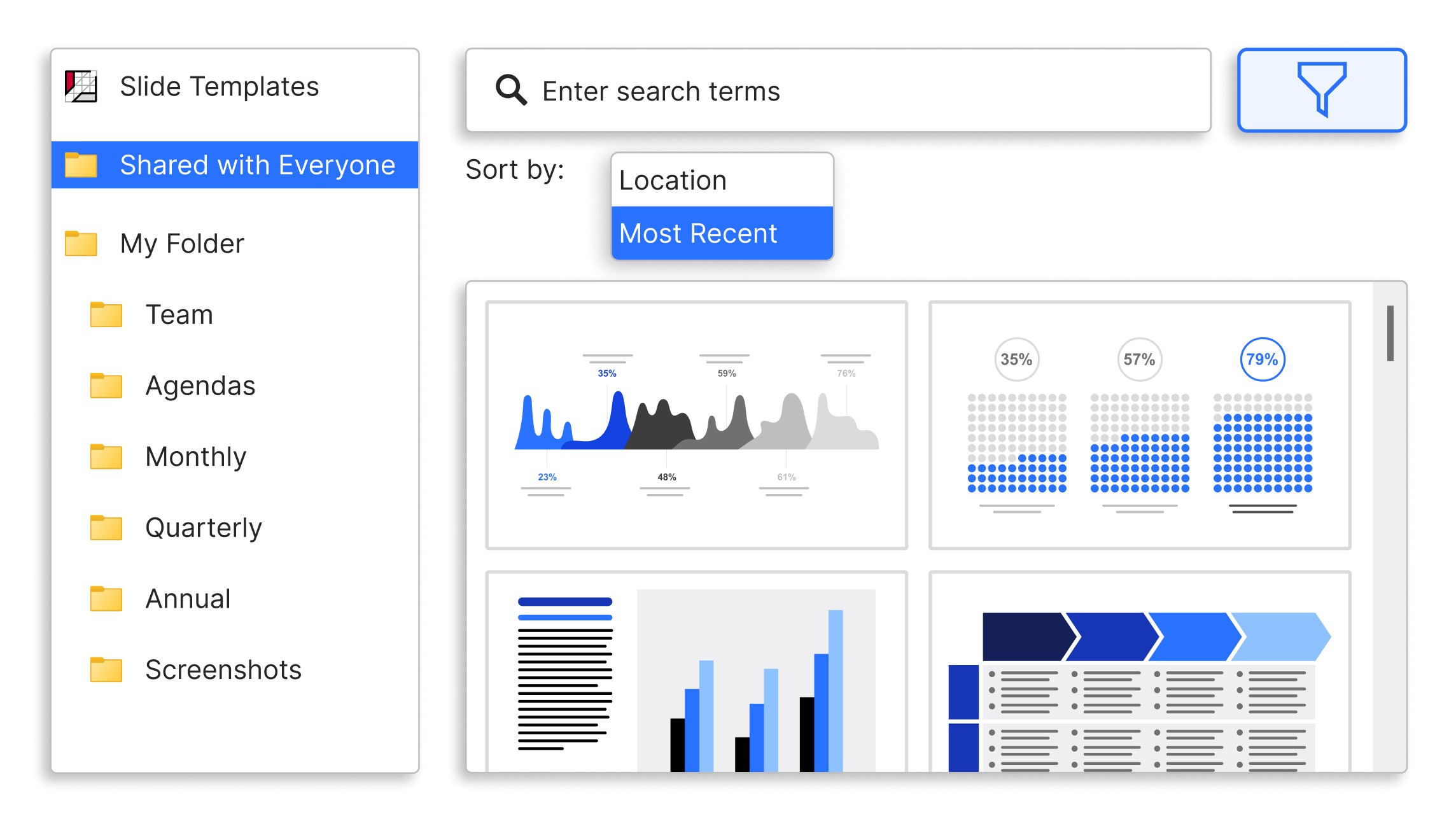 The think-cell Library lets you add your favorite presentations, slides, templates, images and icons, putting everything right where you need it.