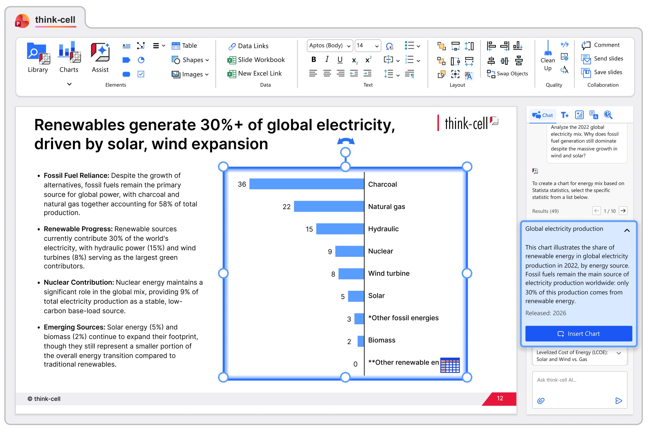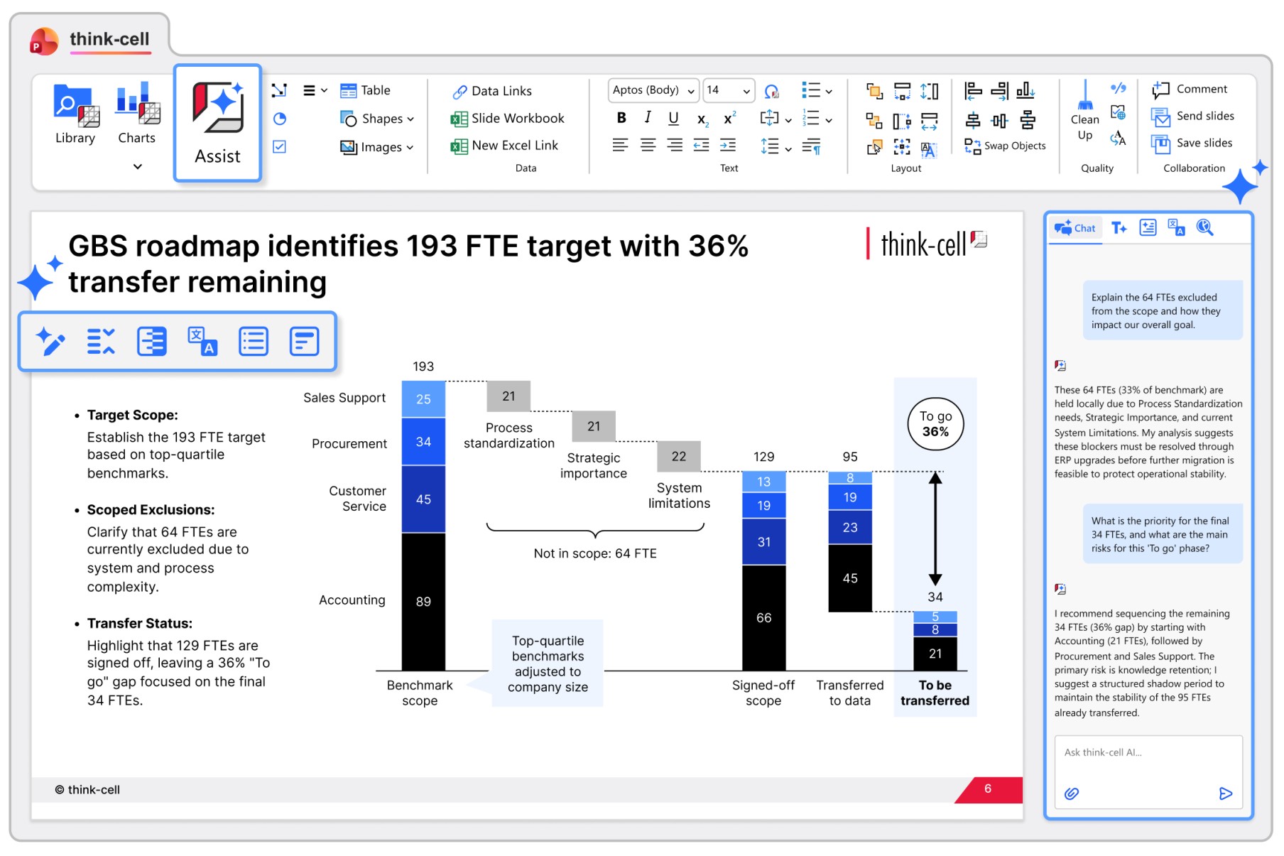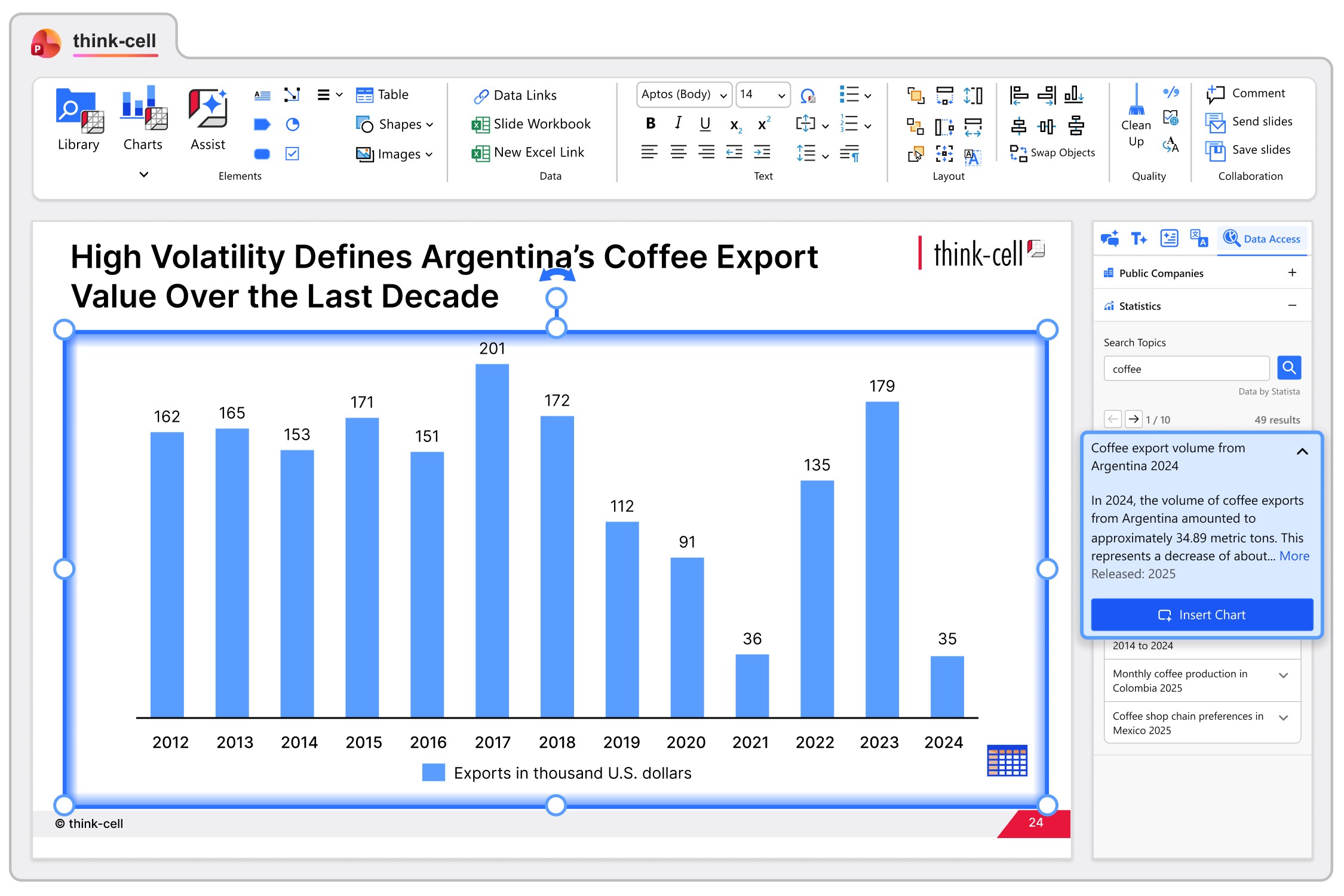 - Instantly turn trusted external data into ready-to-use think-cell charts.