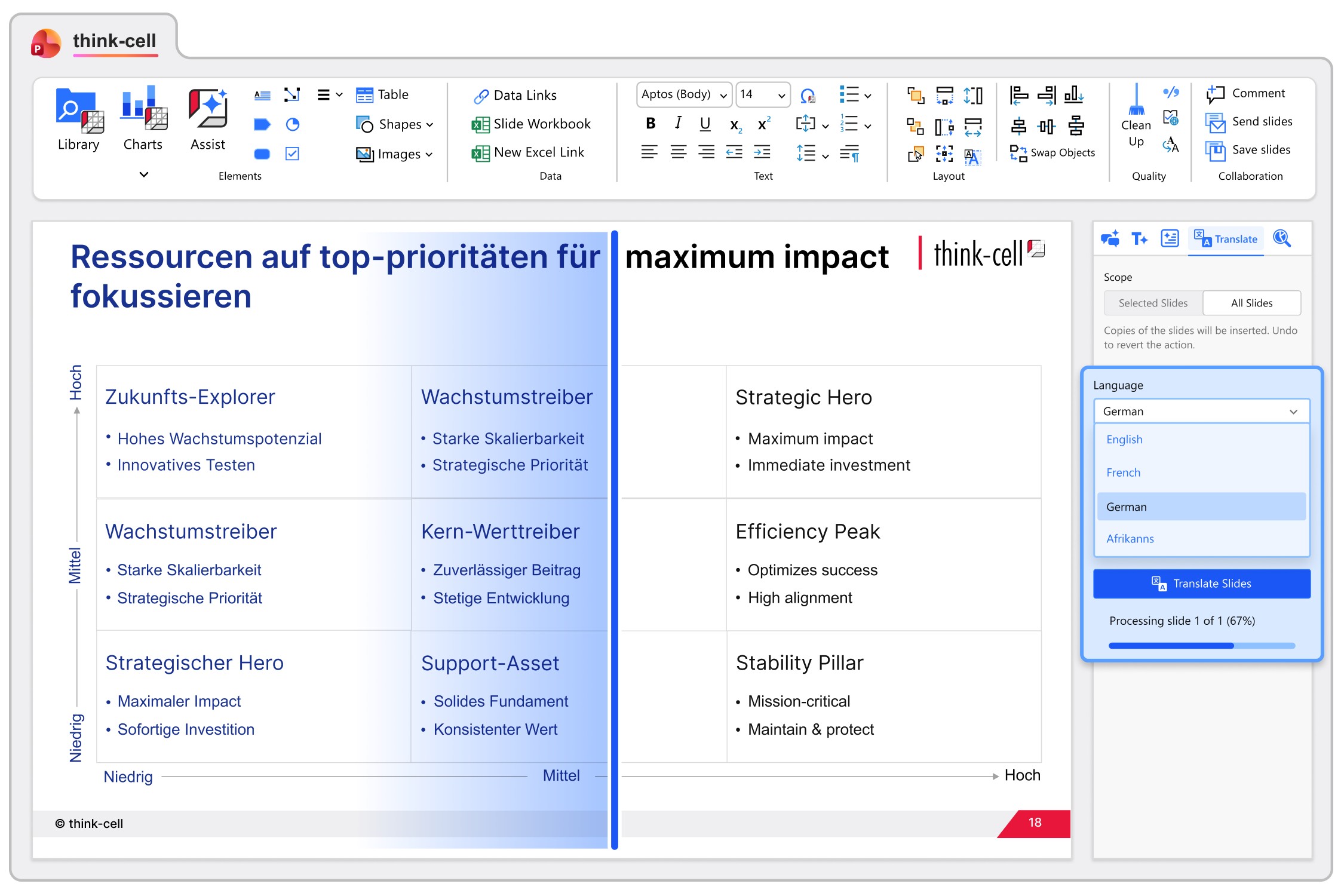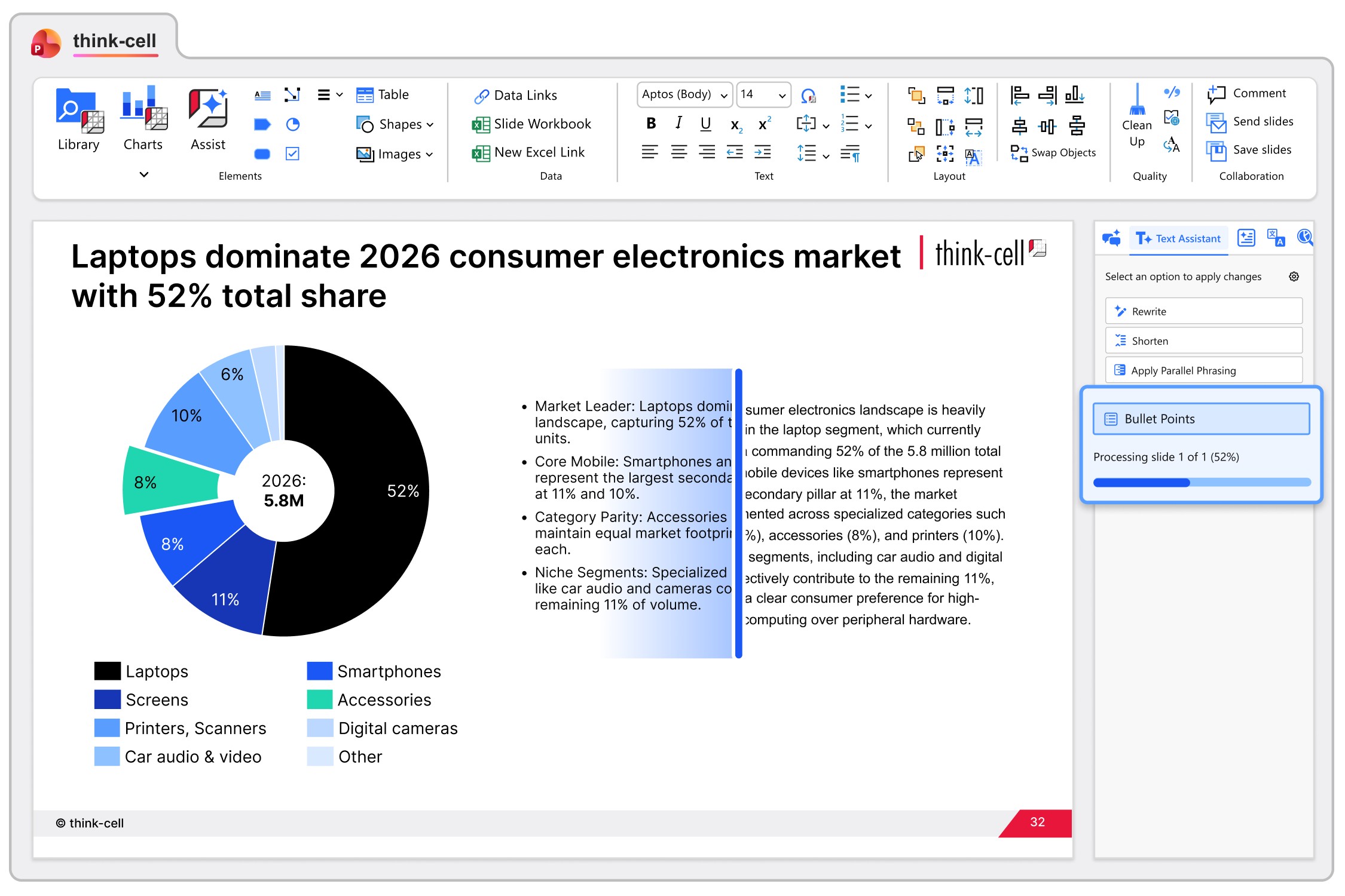 - Rewrite or shorten your content directly in PowerPoint with one click.
