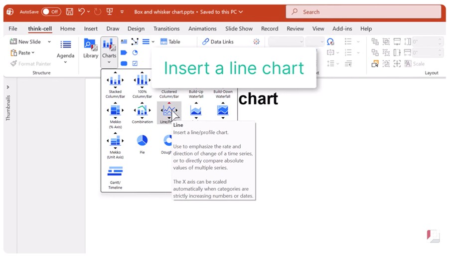 Start by inserting a line chart into your slide.