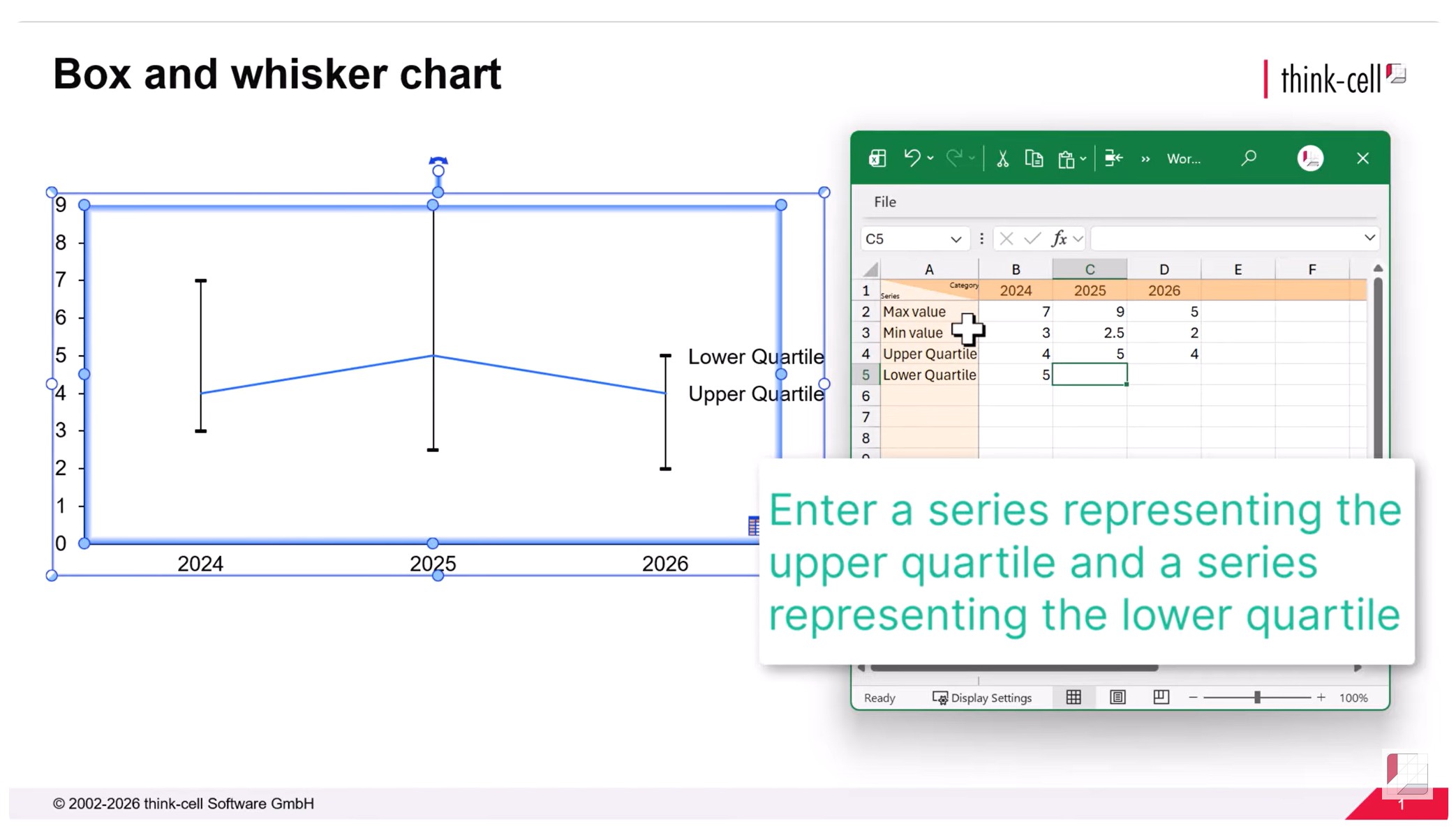 You can download the slide used in this article in this PowerPoint file, which contains the final box and whisker chart, as well as the example data in the accompanying slide workbook. You can also watch the whole process from start to finish in this video: