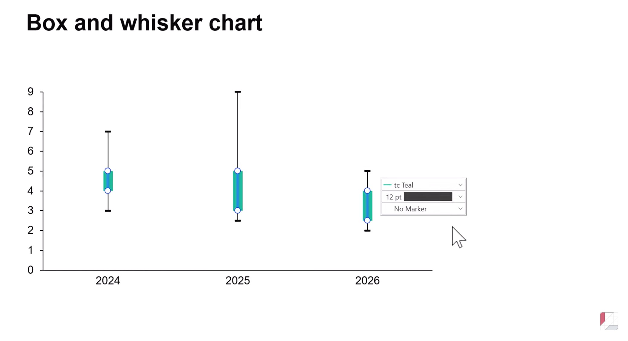 - Left-click to select interquartile lines and access the mini toolbar, where you can use dropdown menus to make changes to the style and formatting