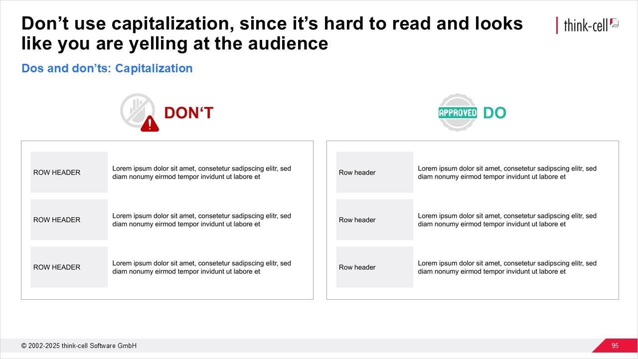 Beyond these elements, a big part of any PowerPoint presentation is the text itself. All copy on your slides should follow your organization’s communication guidelines in terms of tone of voice, style, and capitalization conventions.