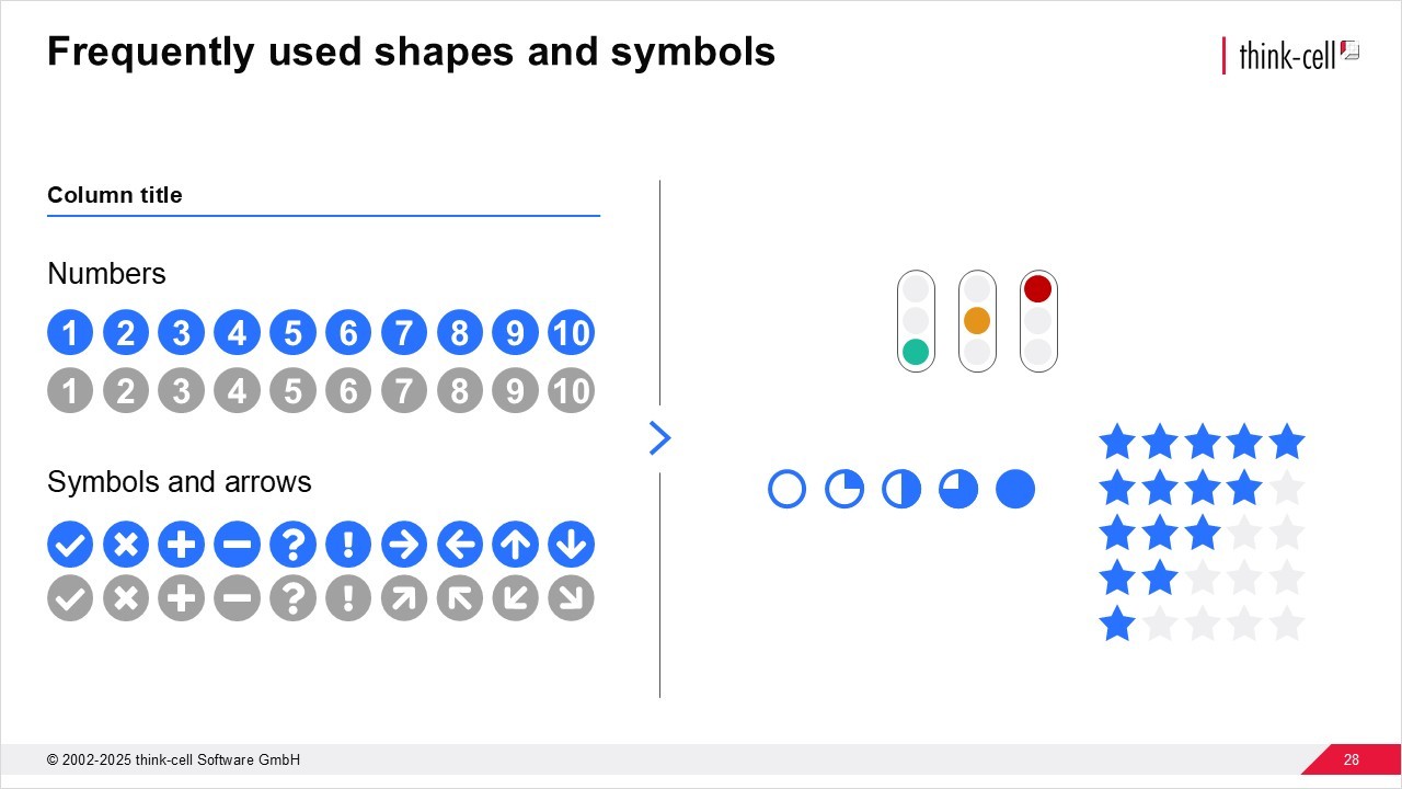 The think-cell Library provides an elegant, built-in way to ensure everyone in your organization creates consistent, on-brand presentations with ease.