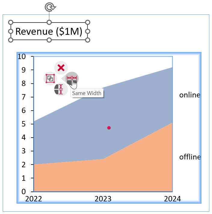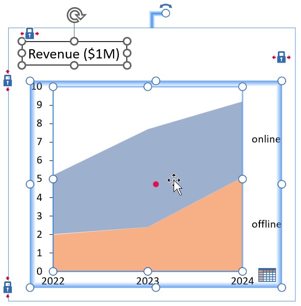 - Select a think-cell element and begin to move it, or start dragging one of the element's resize handles.