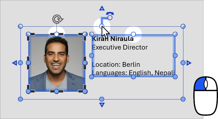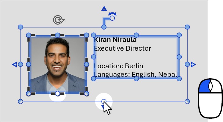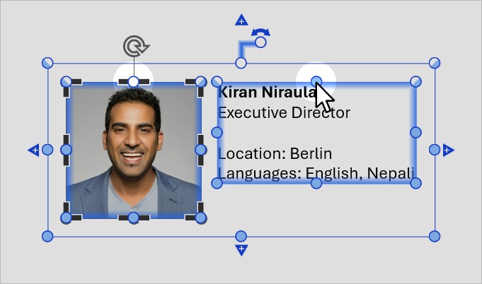 When you select multiple elements or a group of elements, an outer selection frame appears around the elements. You can use the resize handles of the outer frame to lock or unlock the outer edges of your selection. For example: