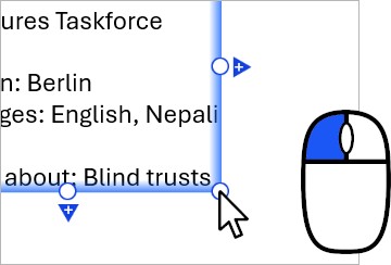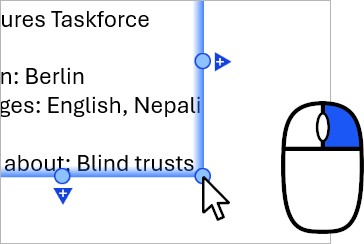 If aligned element edges are snapped together—like text-box edges in a table, for example—these edges always share the same locked or unlocked state. To lock or unlock aligned edges that are snapped together, use the resize handle of any aligned edge or the corresponding edge of the outer frame.