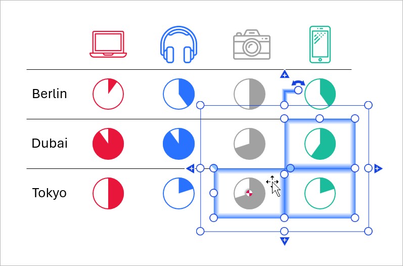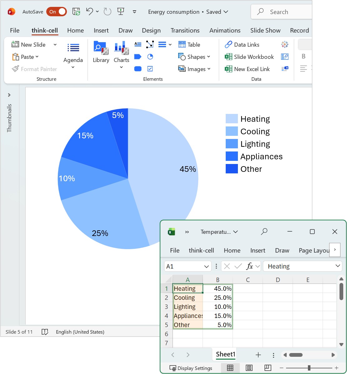 think-cell elements are feature-rich slide objects that you can use alongside PowerPoint shapes to build presentations.