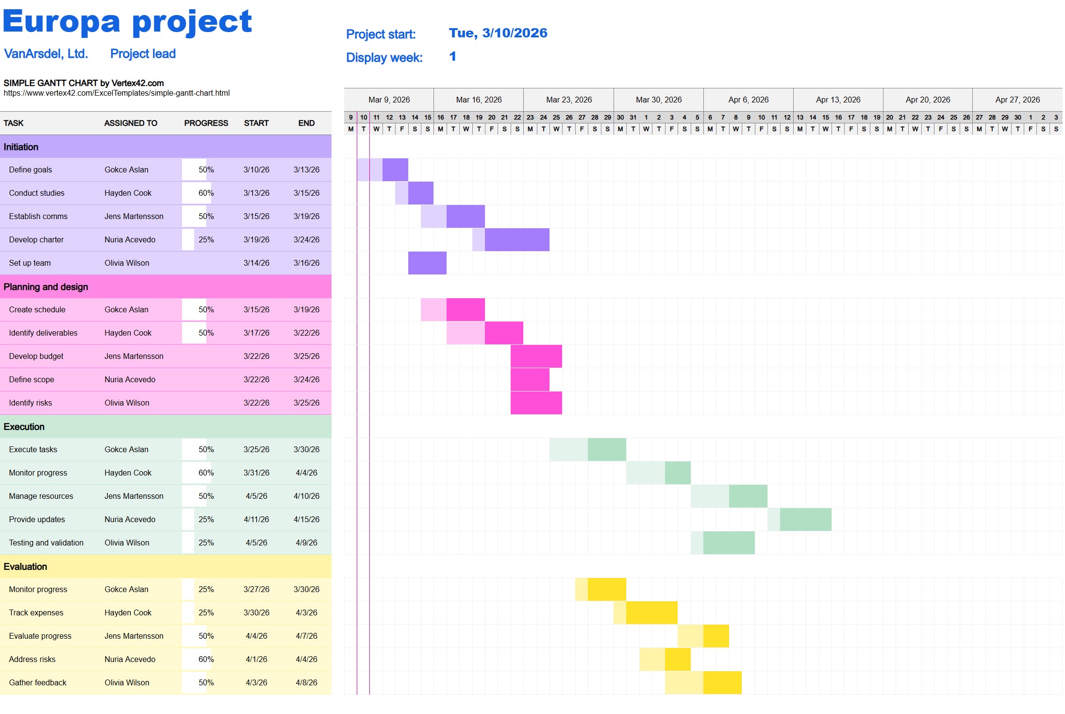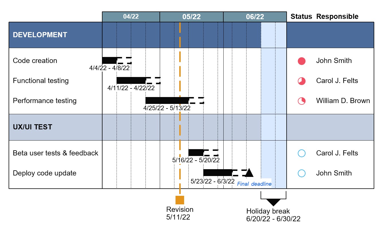 L’allineamento del team è un altro aspetto cruciale di un diagramma di Gantt. Oltre a indicare chi è responsabile di quale attività, i diagrammi di Gantt aiutano a comunicare lo stato del progetto a stakeholder e clienti.