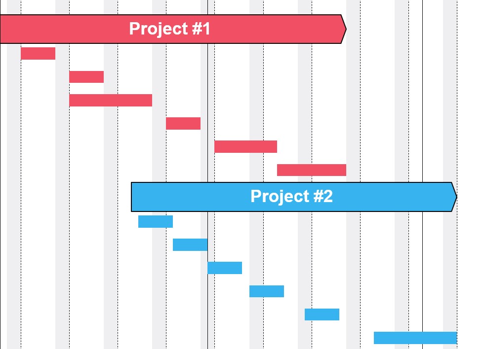 In un diagramma di Gantt multi-progetto, ogni progetto appare come un proprio gruppo di righe. È utile per gli stakeholder che seguono più progetti in parallelo e aiuta a individuare possibili conflitti tra i progetti.