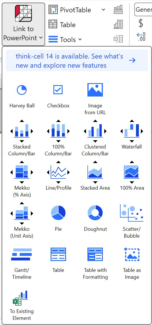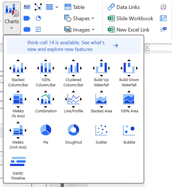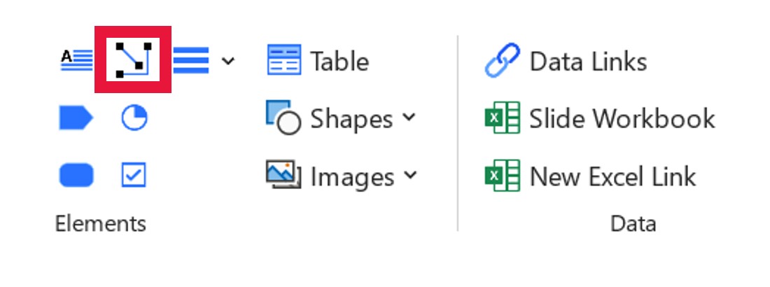 Per usare i connettori universali think-cell, fai clic sul menu think-cell nell’immagine qui sotto per inserirli.