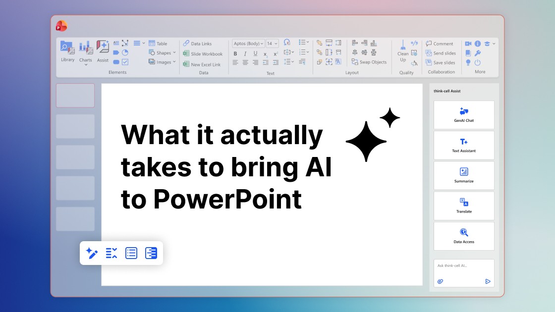 In think-cell, da 25 anni ci concentriamo su qualità e produttività per utenti che non accettano compromessi su nessuna delle due. Ciò che stiamo costruendo ora si basa sulla stessa fondazione. E credo che varrà la pena aspettare.