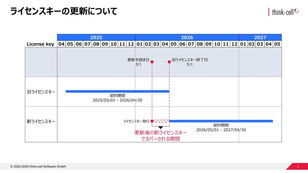 - ライセンスキーの更新は更新日の60日前から可能です。